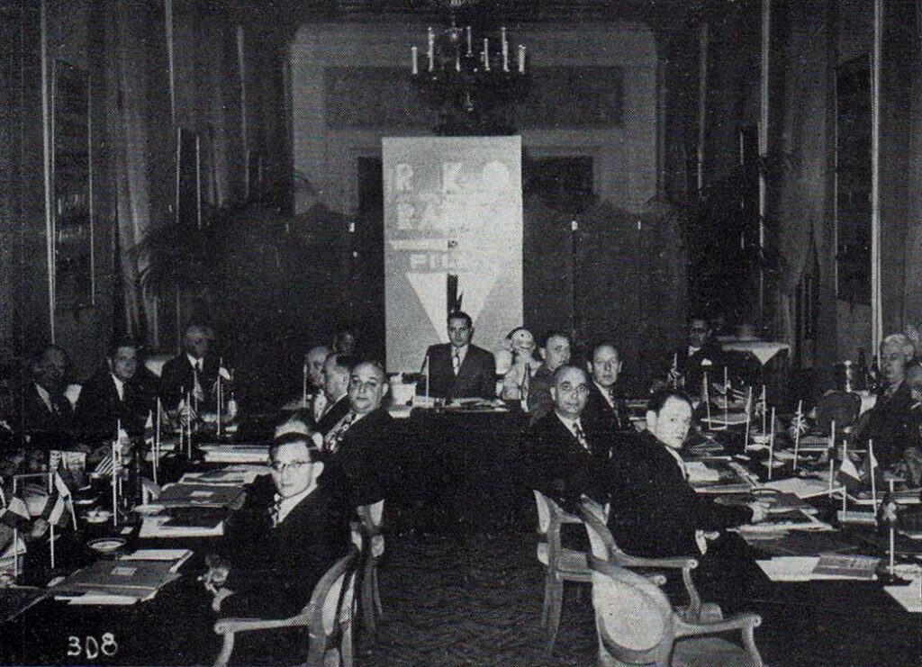 A grand banquet at the “Coq Hardi” joyfully concluded this meeting, attended by more than fifty delegates: Messrs. R. Hanbury of the United Kingdom; L. Lioni of the Netherlands Indies; L. Wynbergen of Belgium; O. Sonnenfeld of Czechoslovakia; G. E. Georgoussy of Egypt; M. Westebbe of Holland; A. Zomerplaag and Ph. de Schaap of Holland; M. Durant of the Indies; Havas of Italy; V. Lisim, H. Pleven, M. Gentel, J. Schoubrenner, J.-M. Mounier of Paris; Czaban of Poland; R. Béja of Portugal; Cazazis of Romania; E. Simon of London; Wallmann of the Scandinavian countries; Blanco of Spain; G. Wadsten of Sweden; Palivoda of Switzerland; etc.