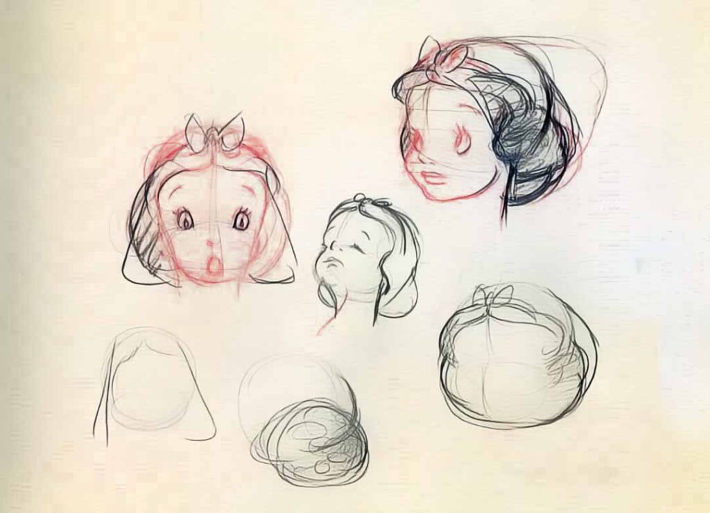 In his November 25, 1935 memo, Walt makes it clear that Grim is supposed to keep working on the shorts and will later “help Luske and Clark on the animation of the girl”. Grim finally worked on the girl, months later, but soon became one of the lead animators on the character of Snow White. Although he was credited as such, it seems that he did not get the bonus some of the other animators had, and he accepted Fleischer studio’s offer to leave and work on Gulliver’s Travels.