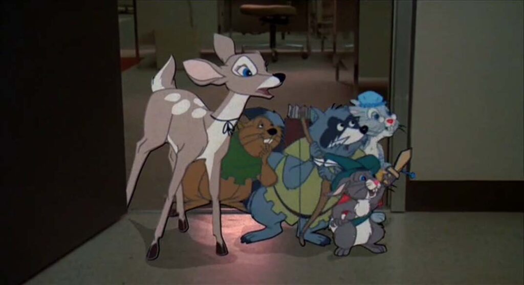 The sequence was animated in part by Disney veterans such as Fred Lucky, who had worked on The Black Hole and The Rescuers, and Fred Hellmich, who had contributed to The Jungle Book, The Aristocats, and Robin Hood.