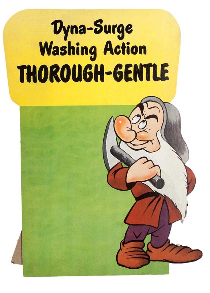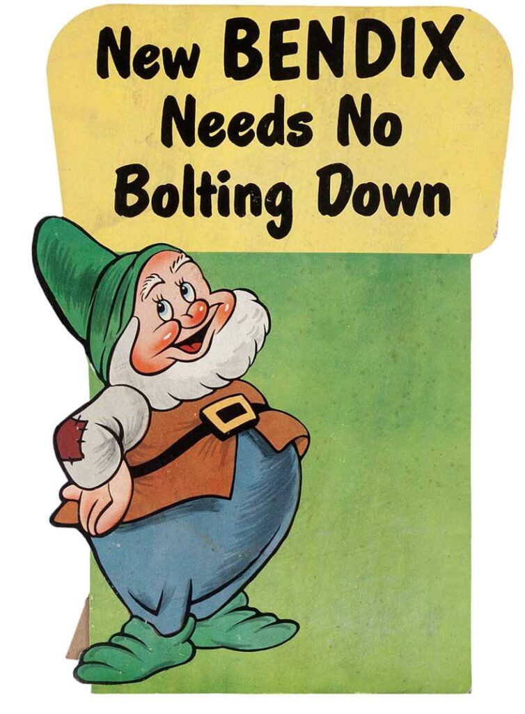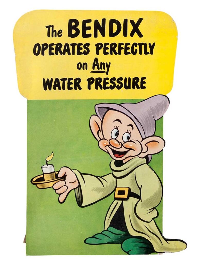 In this supplement, the light is thrown on the Bendix Home Appliances campaign. The company launched a new automatic washer and called it Snow White. A complete list of the material available to dealers is given in the first pages, after which it is described what is expected of theater owners in that respect, like distributing the 32-page comic “The New Adventures of Snow White and the Seven Dwarfs” where Snow White gets a washing machine to help her with the laundry in the cottage of the seven dwarfs.