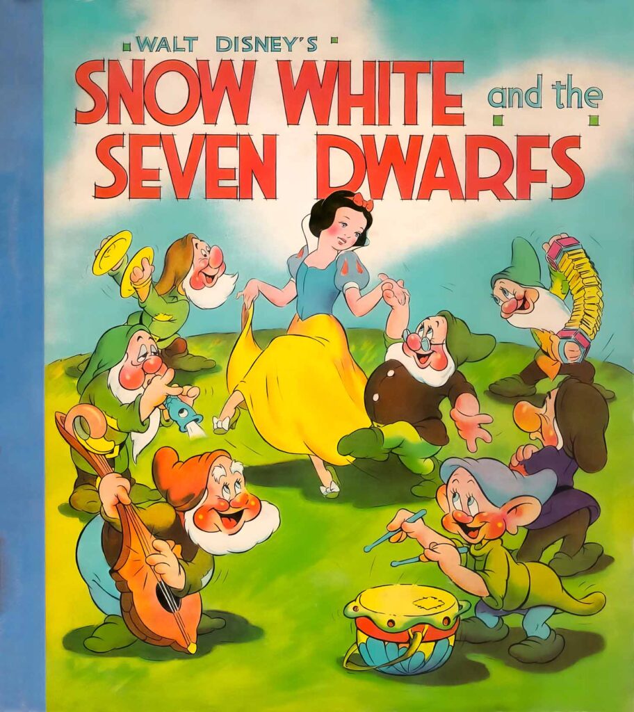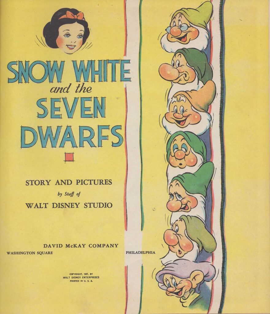Even before the original release of the film, this hardcover book was released in the United States in 1937 by the David McKay Company of Philadelphia. There are advertisements for the book in January 1938 sold at 1 dollar each. The author of the book is not credited. On the dust jacket, there are ads for other series of books, first the Silly Symphonies at 50 cents each: Country Cousin, Elmer Elephant, Hiawatha. Then the Mickey Mouse adventure series at 25 cents, and finally the Mickey Mouse movie books at 1 dollar each.