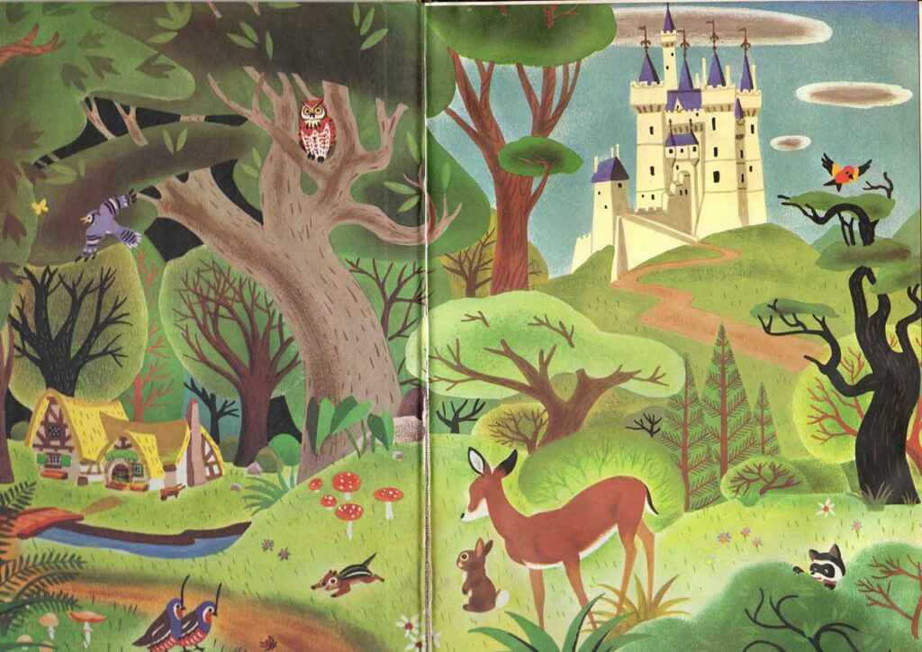 The copyright “Walt Disney Productions, 1953 By permission of Walt Disney Mickey Mouse S.A.” is surprisingly located below the illustration of Snow White’s mother on page 4, while the preceding pages, dedicated to the book’s credits, are conspicuous by their absence of information. Only the title, collection and “Walt Disney” are given, but nothing about the author, illustrator or other contributors.