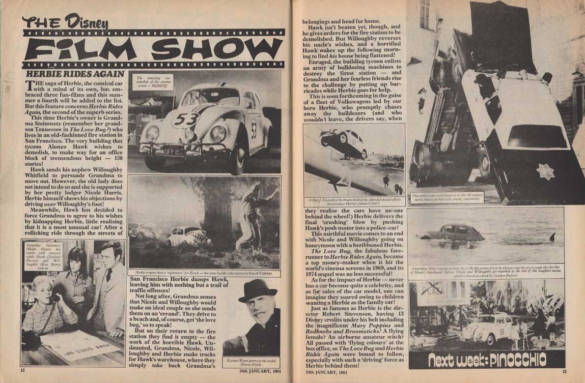 The Disney film show in that issue is Herbie Rides Again, and the serialisation is “Snow White dances merrily with the dwarfs – unaware of the approaching danger.”